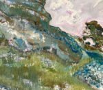 Waterbased oil landscape by artist Rebecca Carr painted after walking and sketching in the tranquility of Conistone Dib.