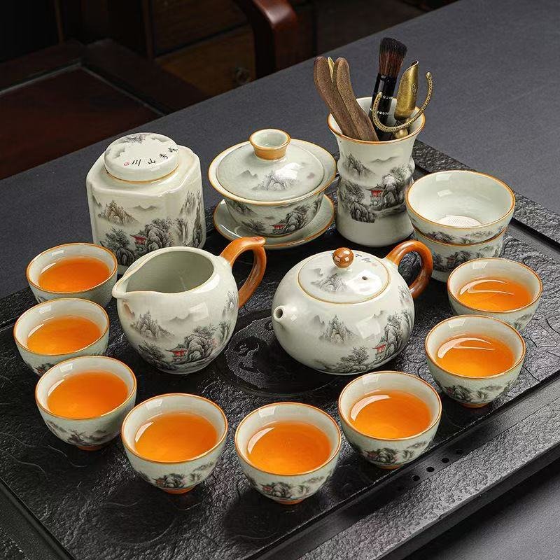 New Ru kiln Kungfu tea set light luxury high-end teapot teacup home ceramic covered bowl tea brewing full set tea ceremony