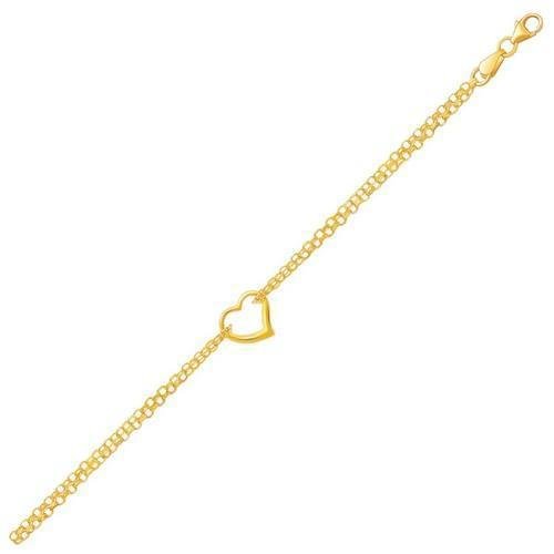14k Yellow Gold Double Rolo Chain Anklet with an Open Heart Station, size 10”