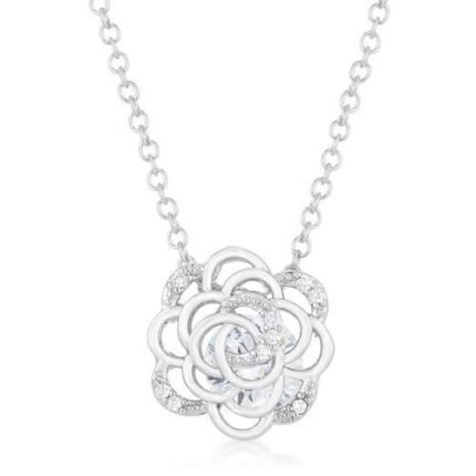 This simple yet elegant pendant features a mesmerizing blue green stone. A trio of glistening white cubic zirconia rests atop the eye catching round peacock green sparkler. This pendant features a beautiful rose gold finish for a brilliant shine. A classic piece you will treasure for a long time.