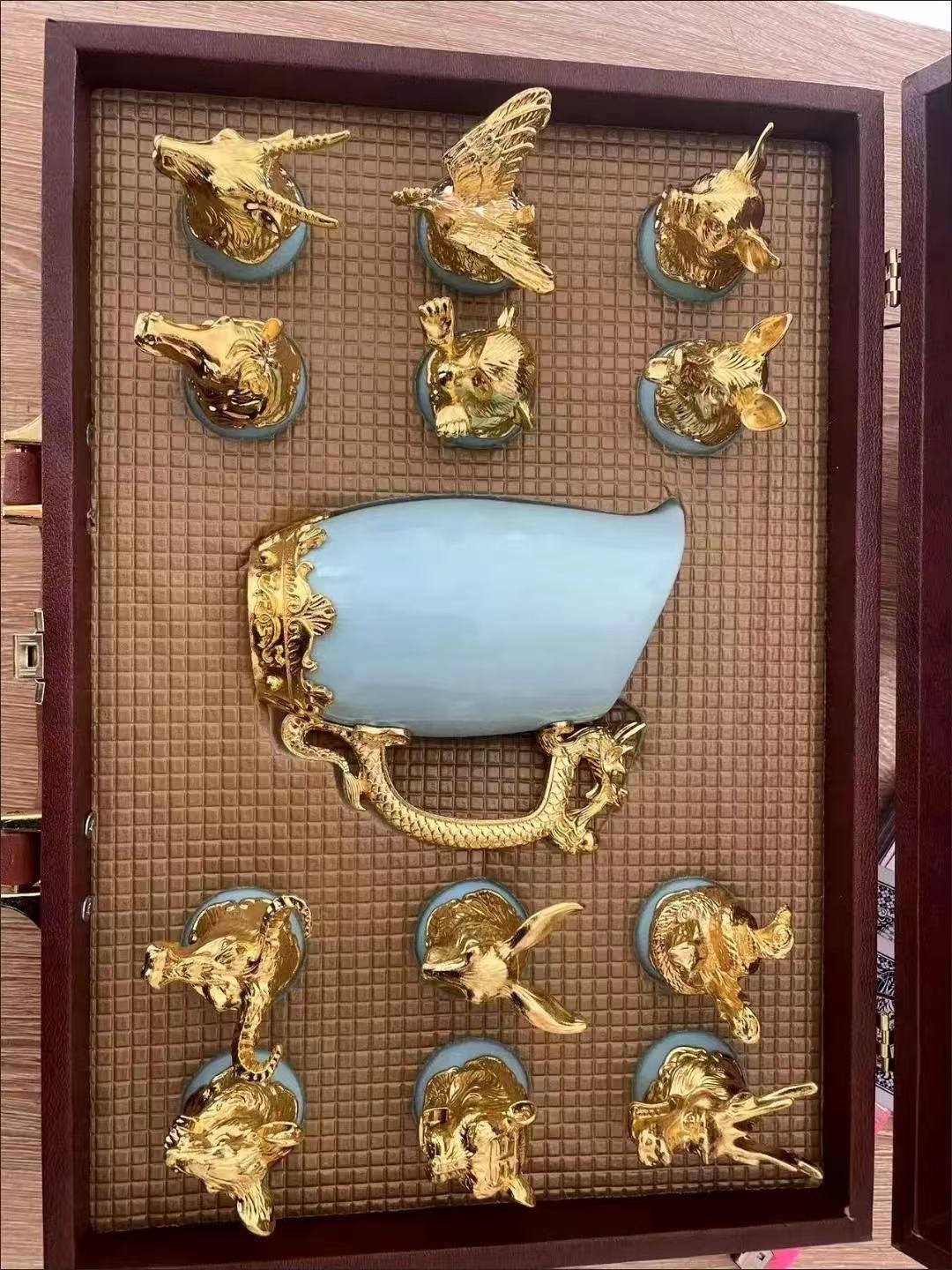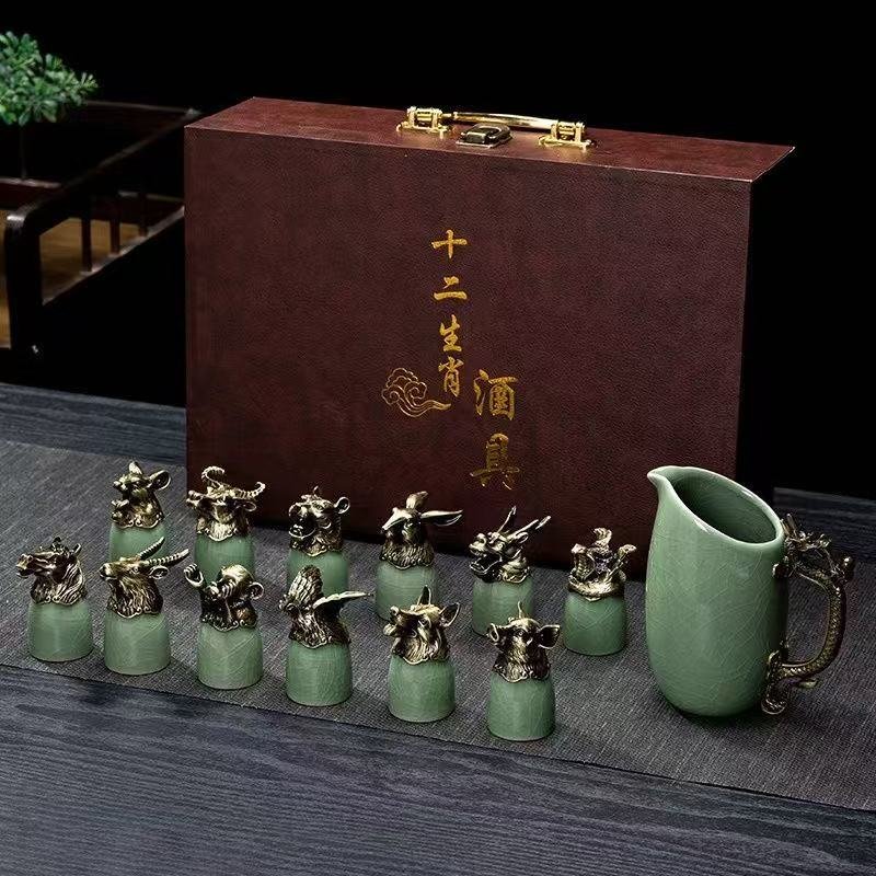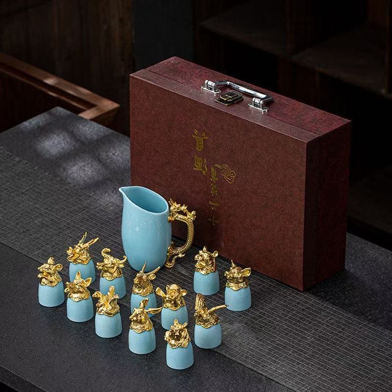 Wineware Chinese Zodiac Animal Head Ceramic White Wine Cup Wine Dispenser Wine Glass High-end Gift Box Holiday Gift Elderly Gift